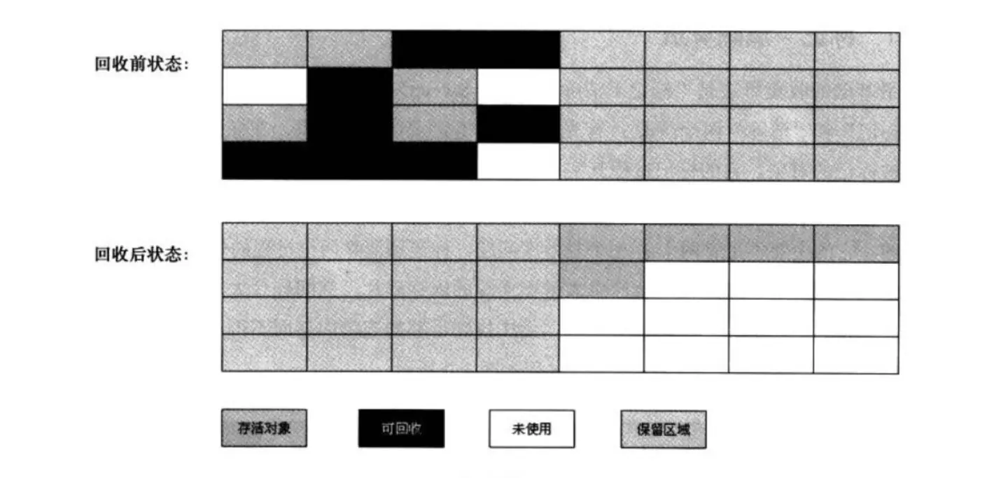 它主要有两个不足:一个是效率问题,标记和清除两个过程的效率都不高;另外一个是空间问题,标记清除后会产生大量不连续的内存碎片,空间碎片太多可能会导致以后在程序运行过程中需要分配较大对象时,无法找到足够的连续内存而不得不提前