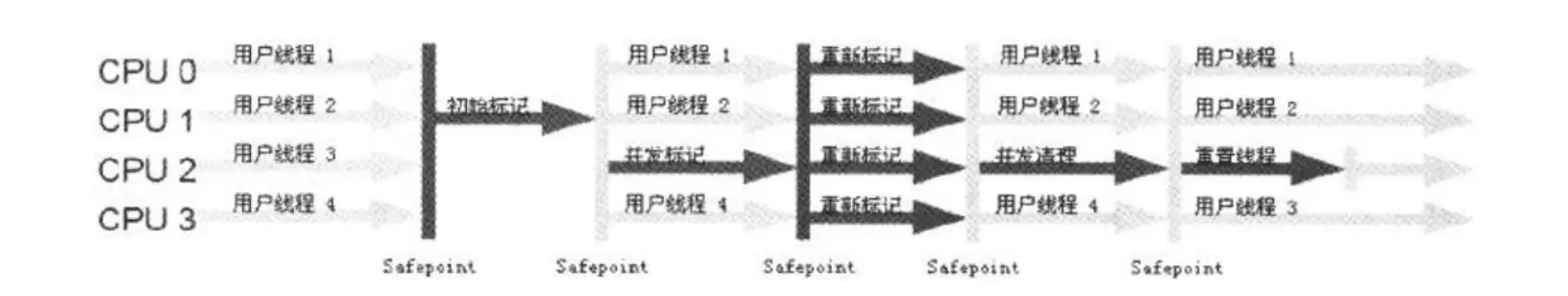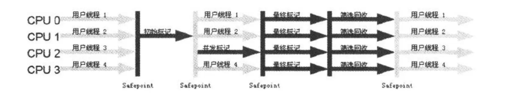 下面通过CMS收集器看到运作步骤中并发和需要停顿的时间: