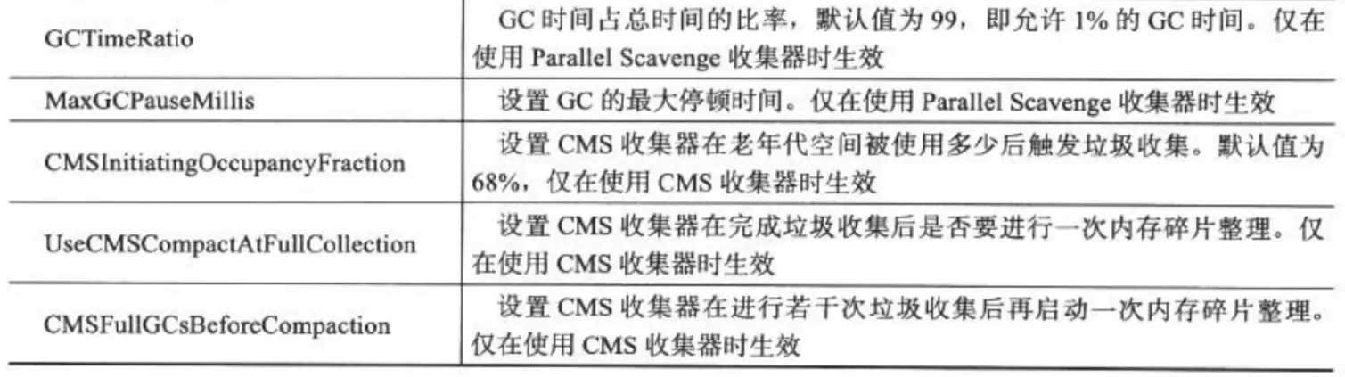 Parallel Scaveng提供了两个参数用户精确控制吞吐量,分别是控制最大垃圾收集停顿时间的-XX:MaxGCPauseMilis参数以及直接设置吞吐量大小的-XX:GCTimeRatio参数。