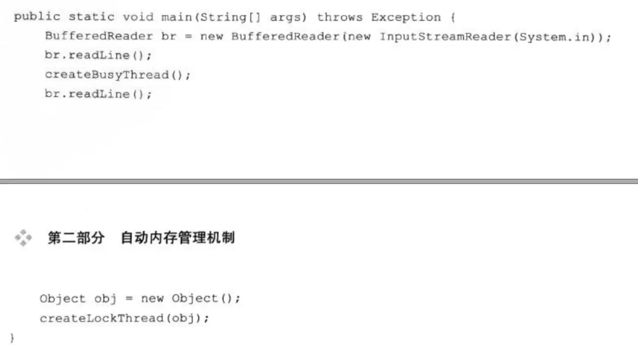 在JDK1.5中,java.lang.Thread类新增了一个getAllStackTraces()方法用于获取虚拟机中所有线程的StackTraceElement对象。使用这个方法可以通过简单的几行代码就完成了jstack的大部分功能。在实际项目中不妨调用这个方法做个管理员页面,可以随时使用浏览器
