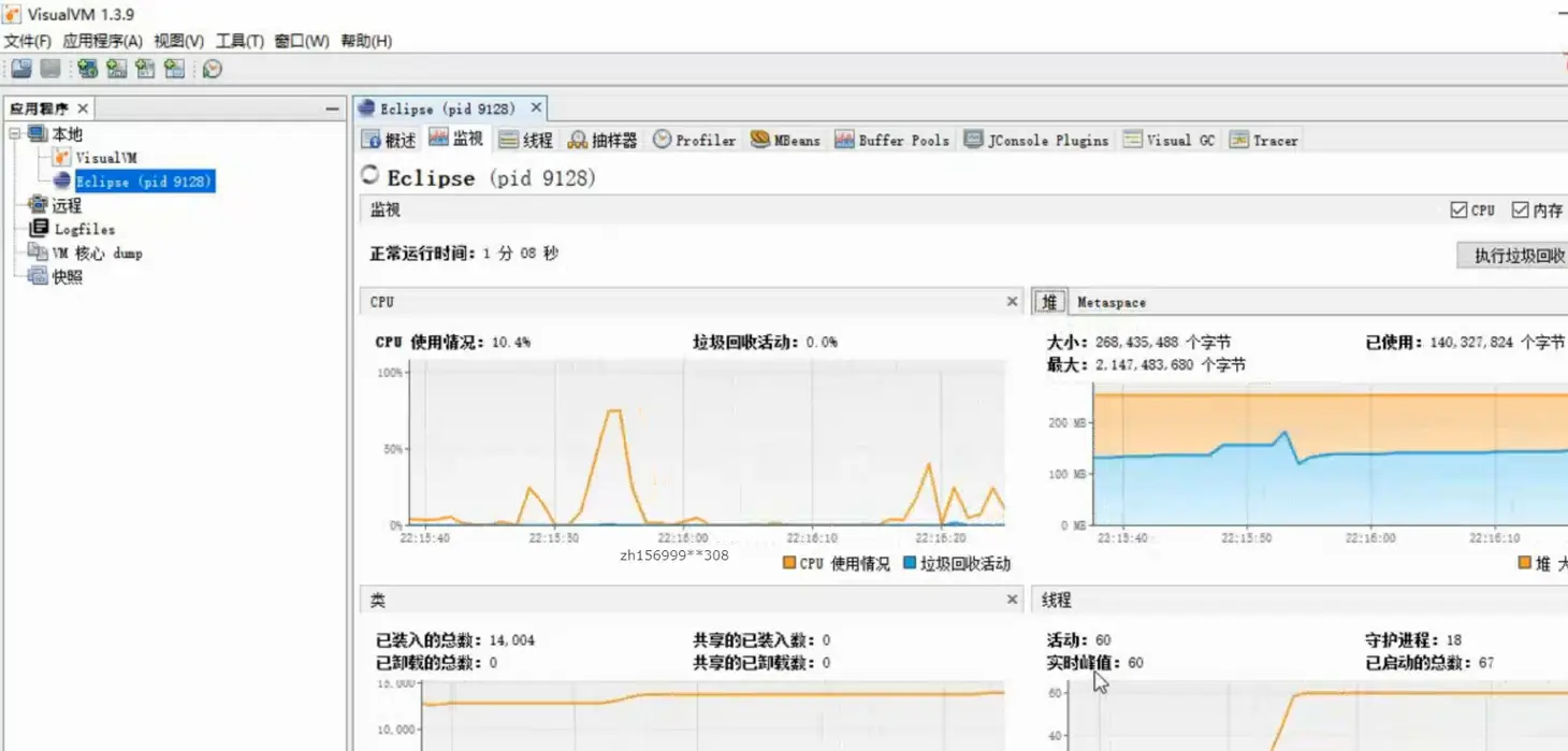 2.监视应用程序的CPU,GC,堆,方法区,以及县城信息(jstack,jstat)