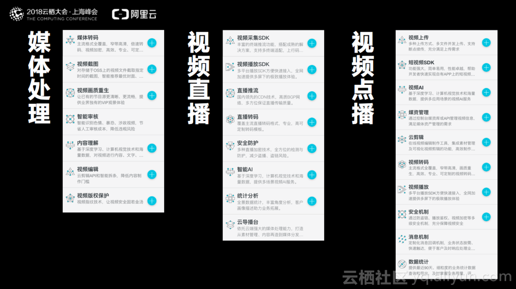 阿里视频云的定位是为用户提供基础的视频服务,从高可定制、高可扩展性、高性能、高质量的视频处理(AI)、存储、传输PAAS服务,到一站式端到端视频解决方案,各种体量,各种模式(toC或者toB)的用户在这里都可以在此之上搭建自己的应用及服务。