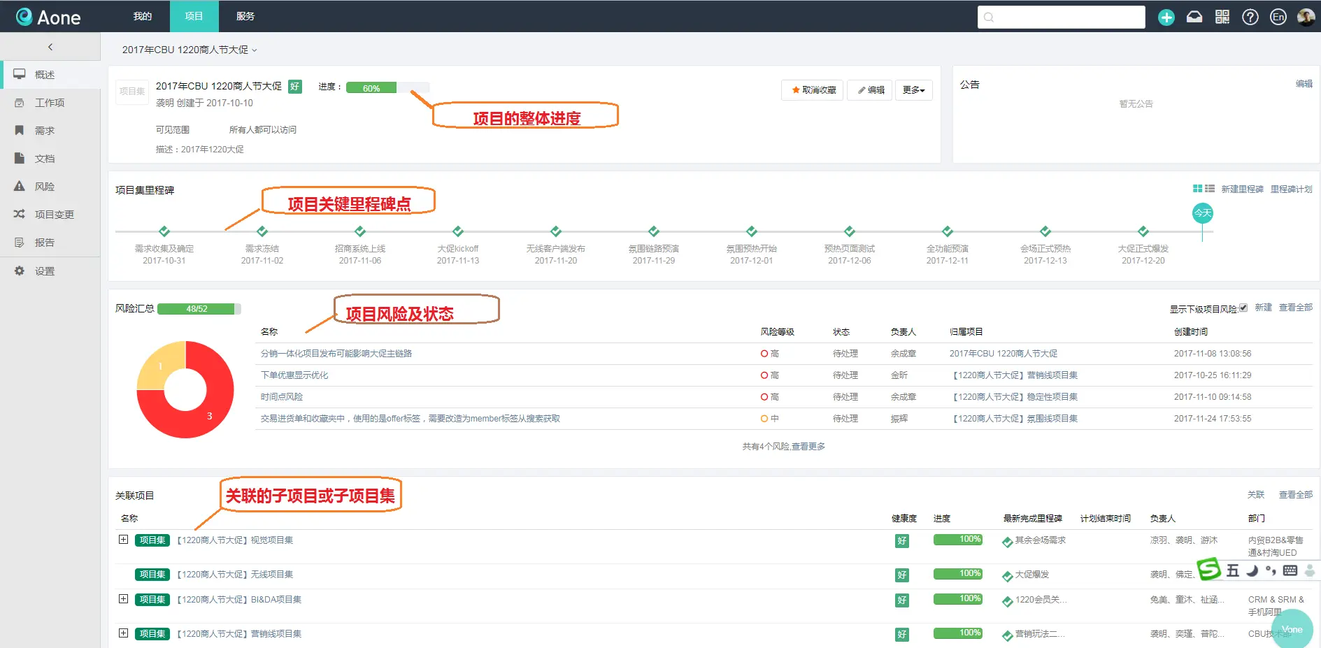 单纯讲理论只能是纸上谈兵了,只有和实践相结合才会有产出和结果。但最好的实战是能把这些理论中的流程、管理及过程等融合到系统中,让PM及项目组同学使用系统即可完成对项目的管理。今天就结合CBU 1220商人节大促来谈谈我们是如何借用云效和大促管理中心来做跨多团队协同的项目管理的。