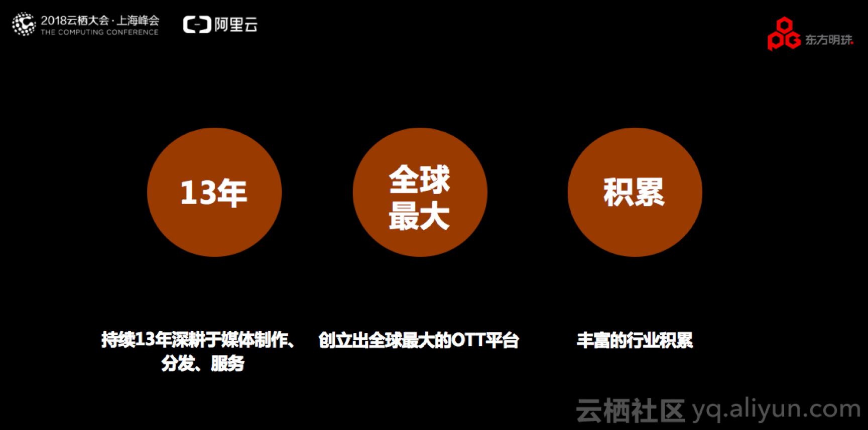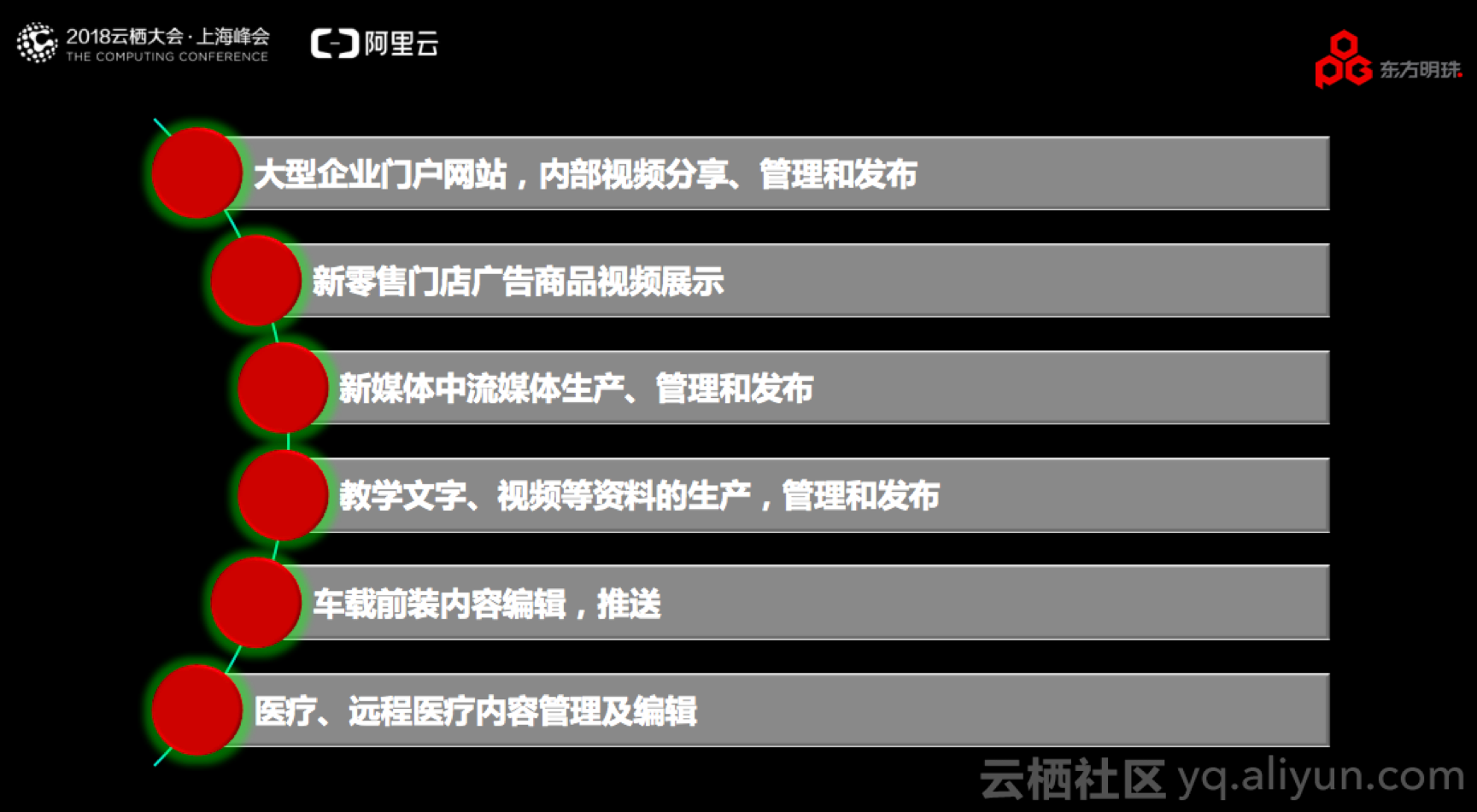 在分享中,周少毅表示:起初,各行业、各企业都想建立自己的网站,而现在,各行业、各企业都希望在网站中加入视频,因为视频在传播中最有震撼力,这是一个市场需求。但是并不是所有企业都可以投入如此多的人力和时间,所以东方明珠基于阿里云视频服务,建立了一套完整的OTT平台SaaS服务,让非专业公司拥有视频服务像搭建一个网站一样简单。