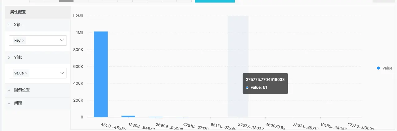 * | select key , value from( select histogram(method) as his from log) , unnest(his ) as t(key,value)接下来,可以配置可视化视图: