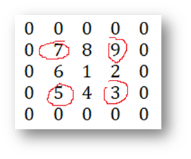 当n=2,时右上角元素为9,左上角元素为7,左下角元素为5,右下角元素为3