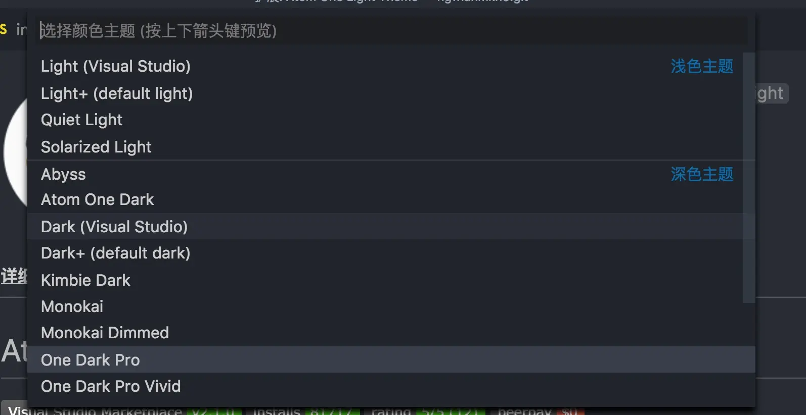 第二部,安装好了之后只是证明你本地的VS Code上面有这个插件了,还需要将当前使用的主题插件切换成你想要的才行;