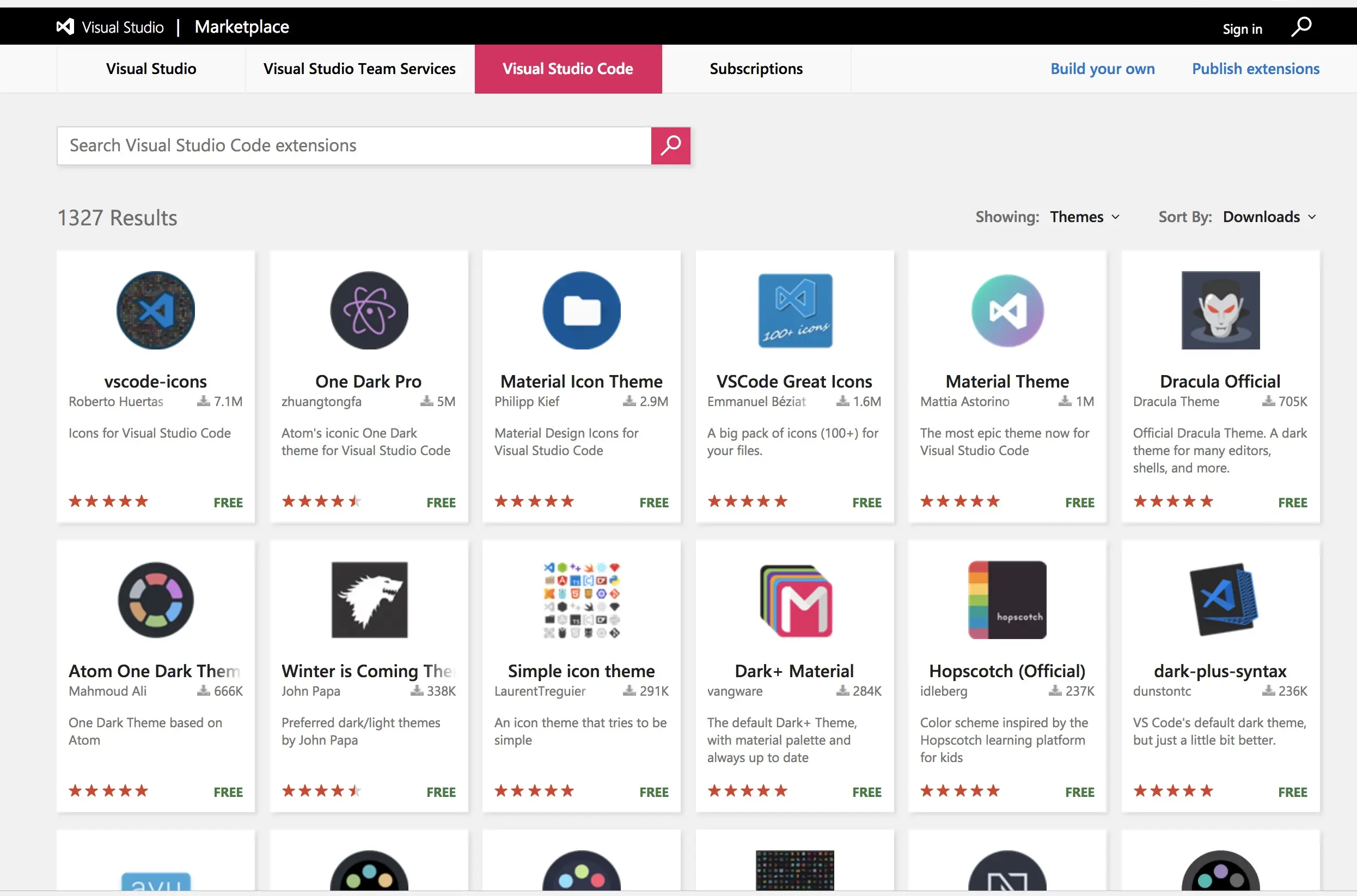 更多Visual Studio Code 主题插件请参考VS Code Downloads