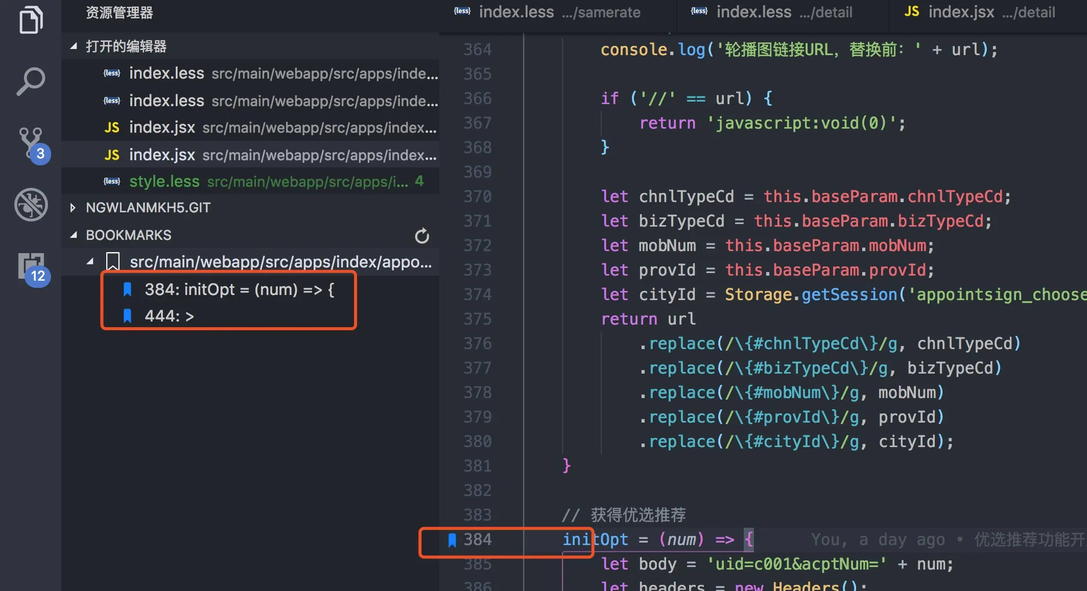 Bookmarks : 这个插件支持在文件特定的行做标记,更好的提高开发效率。