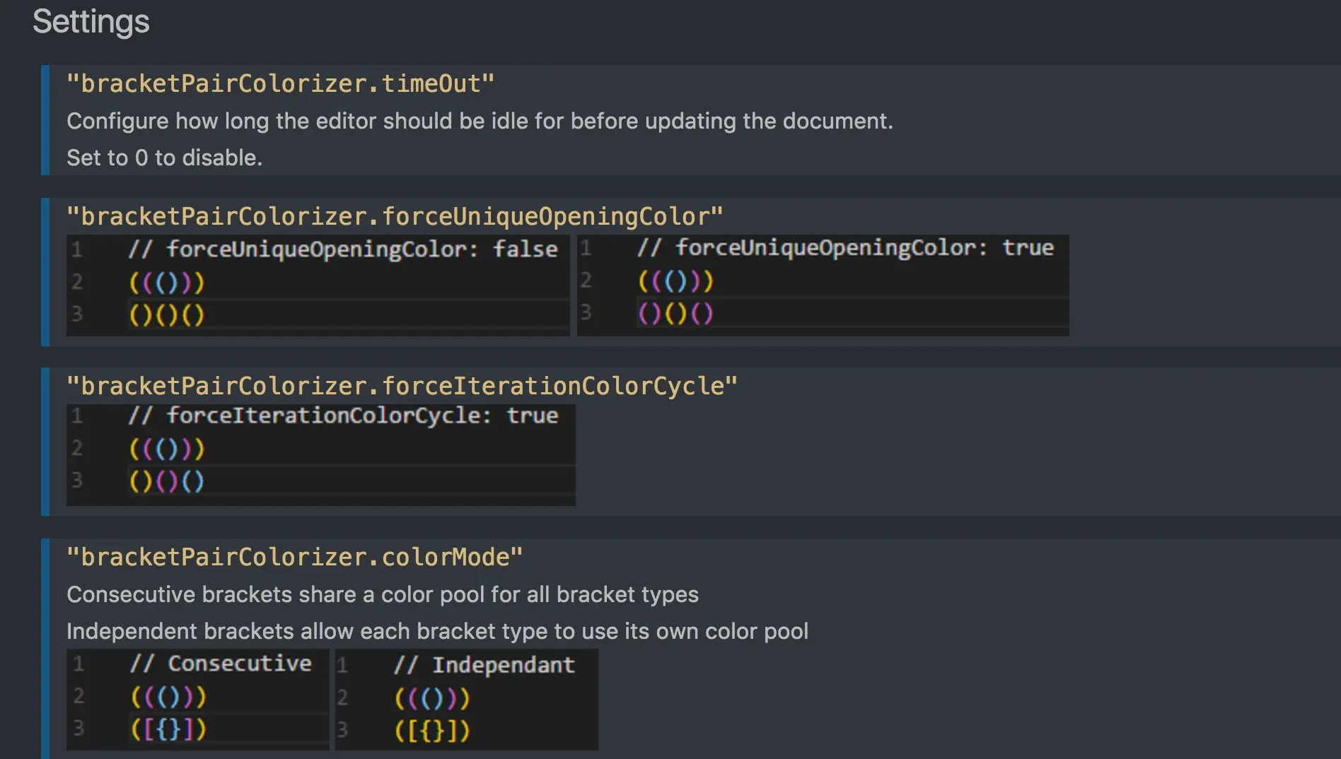 Bracket Pair Colorizer :很多括号的情况下,这个插件可以做一个颜色的区分,代码一目了然。