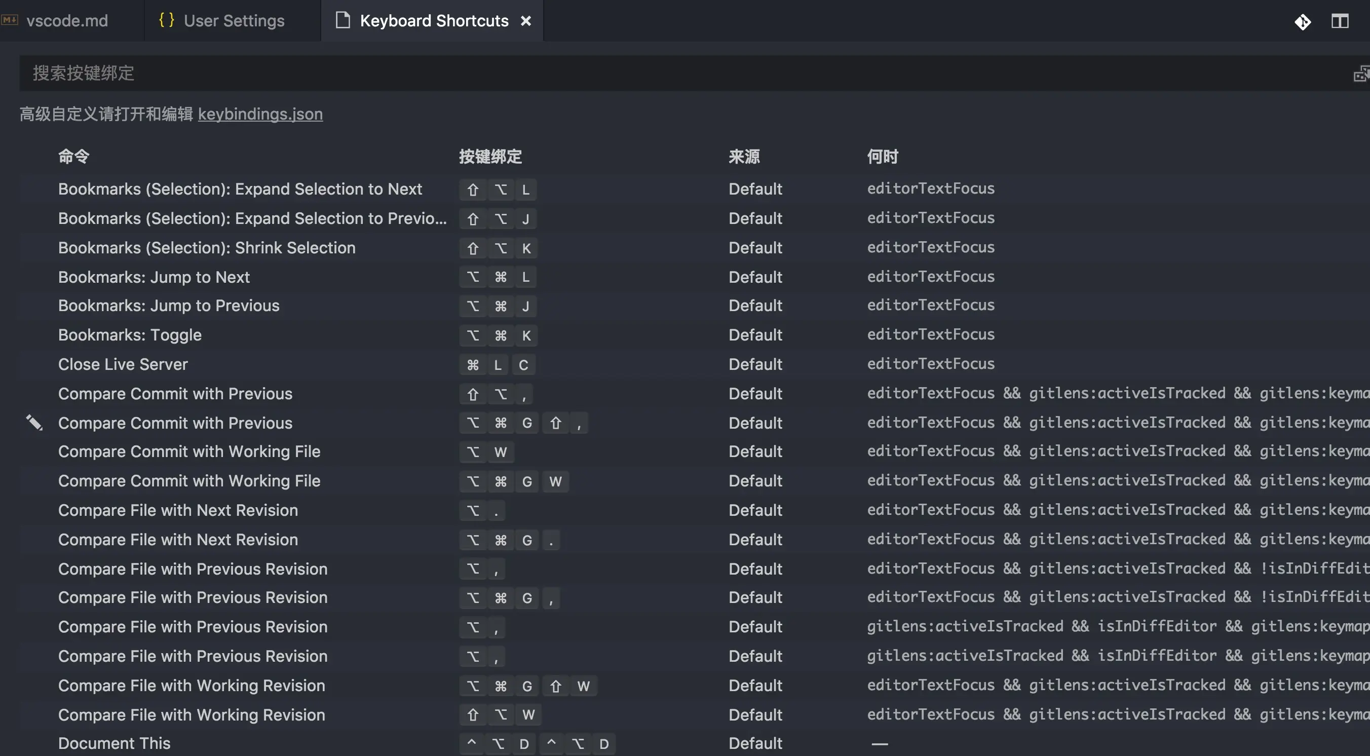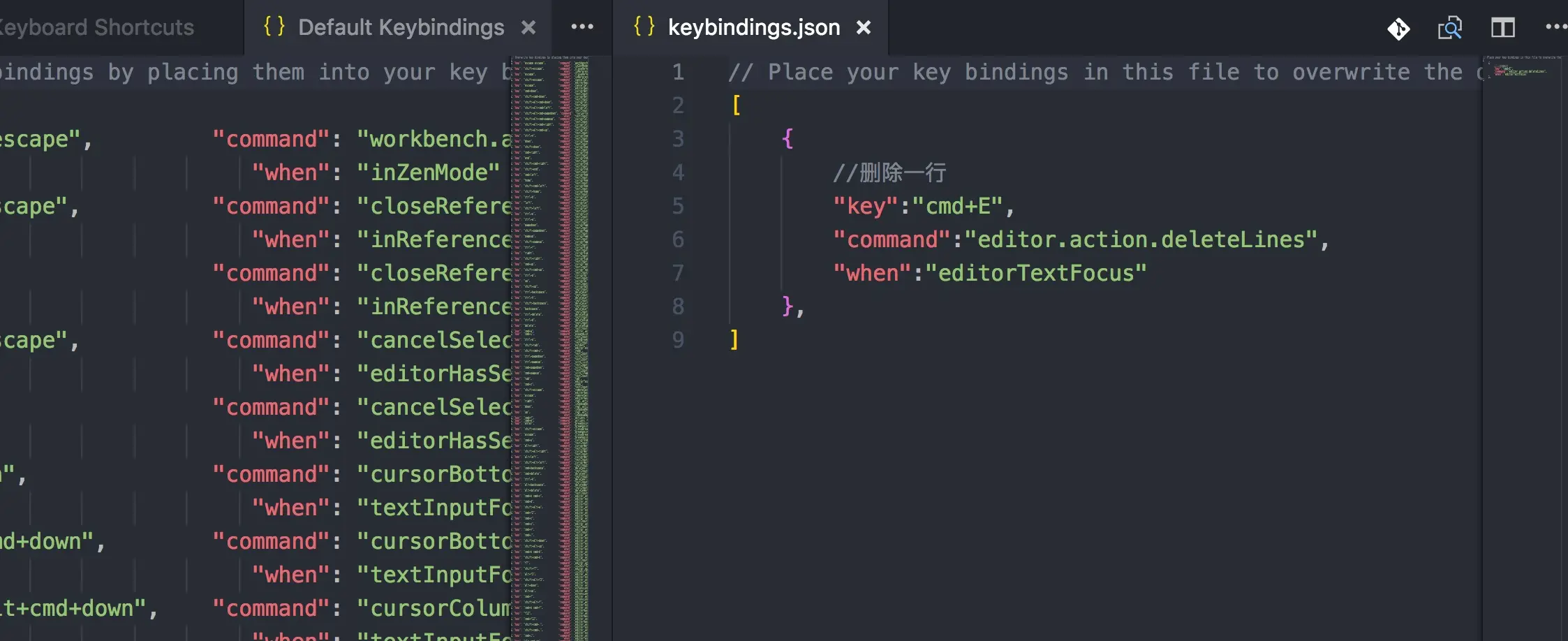 我们也可以自定义快捷键,在keybindings.json里面设置覆盖即可