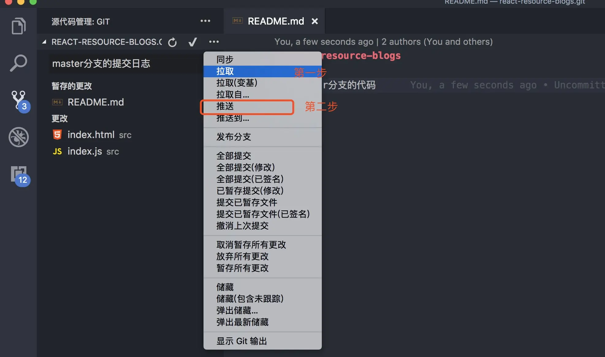 提交好了之后还需要拉取git远程分支的代码才能推送。