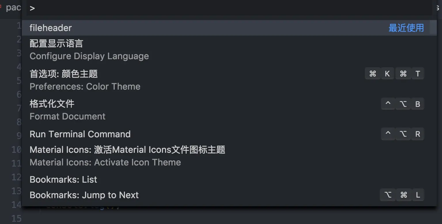 comd+,),可以设置一些作者信息,然后打开命令面板(comd+shift+P),输入fileheader回车即可