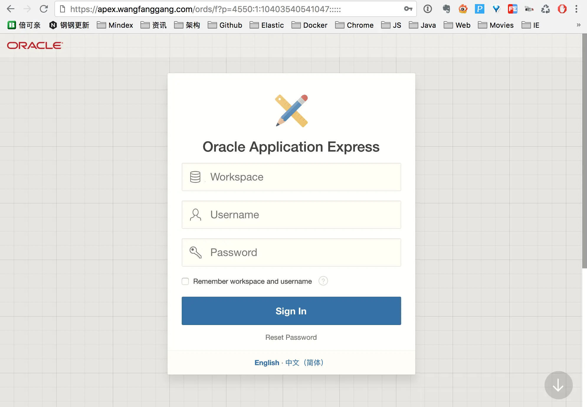 配置完 nginx,别忘了重启令配置生效。再次在浏览器中访问 APEX 页面,如果能看到如下界面,恭喜你,你的 SSL 证书生效了!!