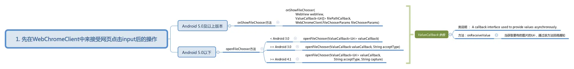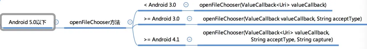 我们可以看到我们在WebChromeClient在监听<input>点击事件的时候,还要根据不同的版本来区分,主要是以Android 5.0版本来进行大的划分。