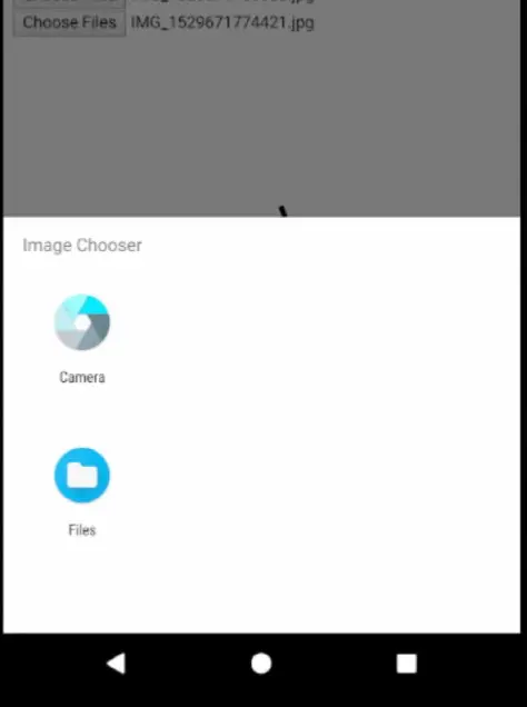 我们肯定想到是用户点击了某个按钮后,我们需要跳出一个弹框,然后上面有拍照和图库按钮: 比如我使用系统自带的选择框(不同手机显示的弹框不同):