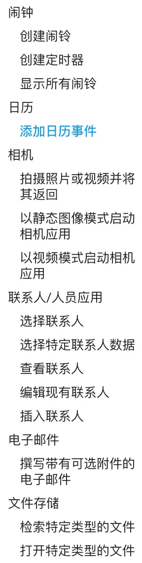 所以这里我们只需要找到相应的Intent,然后把我们的Uri位置赋值给Intent即可: