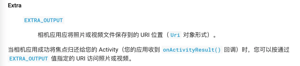 intent.putExtra(MediaStore.EXTRA_OUTPUT, uri);