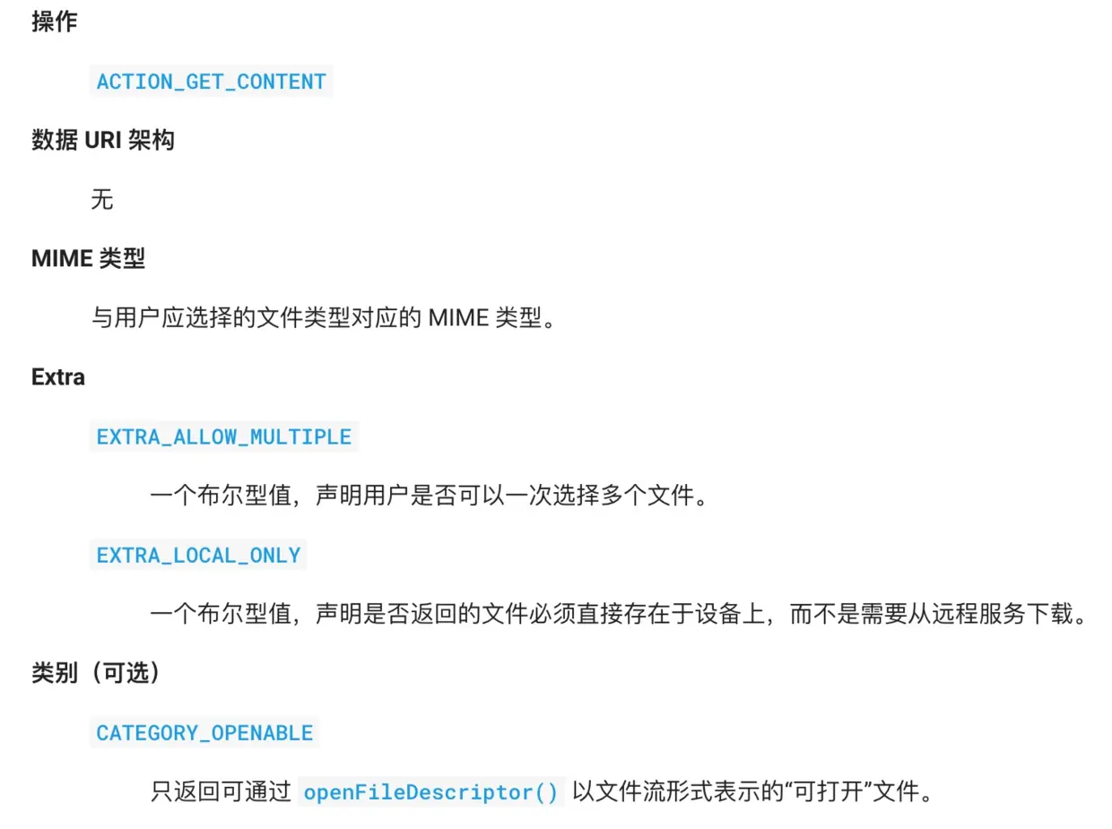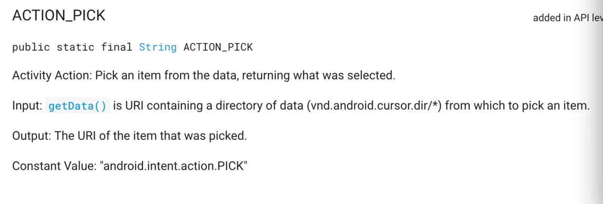 这里我要提一下,我们在设置Intent的Action的时候不只是可以使用ACTION_GET_CONTENT,还可以使用ACTION_PICK。