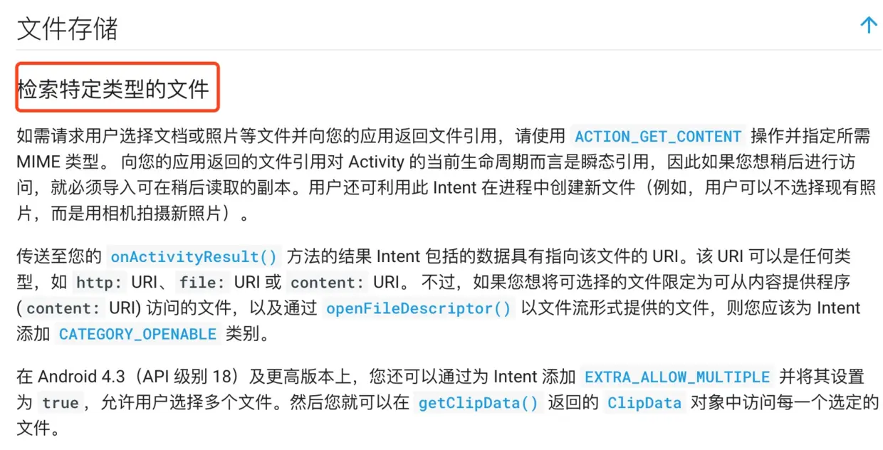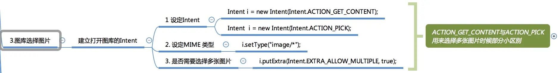 因为我们是查看本地的图片,所以我们要使用 ACTION_GET_CONTENT,同时指定MIME类型是图片类型,如果要进行图片多选,就再指定EXTRA_ALLOW_MULTIPLE为true。