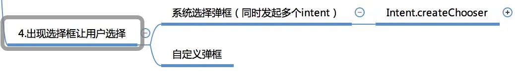 这里我们讲如果只是给定我们想要启动的多个Intent的选项,让系统帮我们弹出弹框及相关按钮,关键字就是Intent.createChooser方法