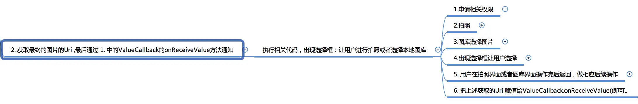 所以我们最终目标就是获取选择的图片的Uri,然后给ValueCallback.onReceiveValue方法,这就是我们整个文章的最主要的流程。