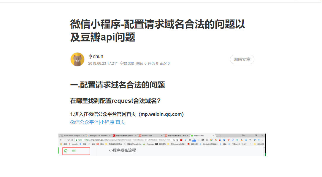 微信小程序-配置请求合法域名的问题以及豆瓣api问题 广顾dun 2018-06-23 158 阅读1分钟 微信小程序-配置请求合法域名的问题以及豆瓣api问题 https://www.jianshu.com/p/b71200e0b9b9