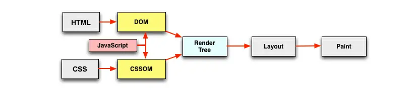 <script>且没有defer或async属性的 标签时,会触发页面渲染,因而如果前面CSS资源尚未加载完毕时,浏览器会等待它加载完毕在执行脚本。