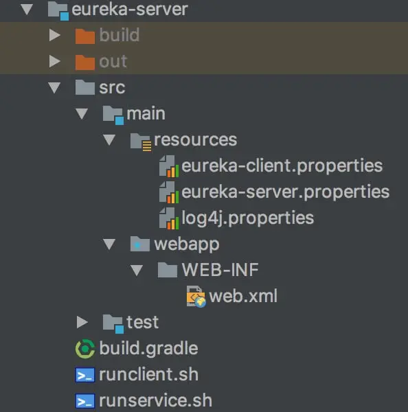 eureka-server 模块,将 eureka-client + eureka-core + eureka-resources 三者打包成 Eureka-Server 的 war 包。项目结构如下图: