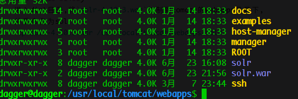 启动tomcat后, 该目录下会自动将solr.war解压, 生成solr文件夹, 进入到该文件夹,