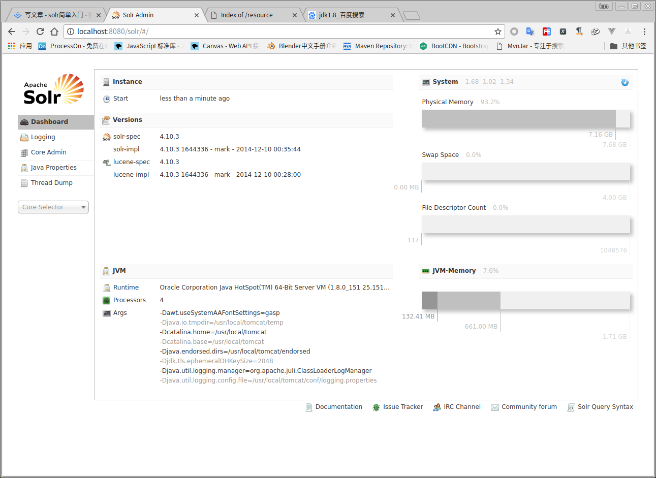 访问solr项目: localhost:8080/solr