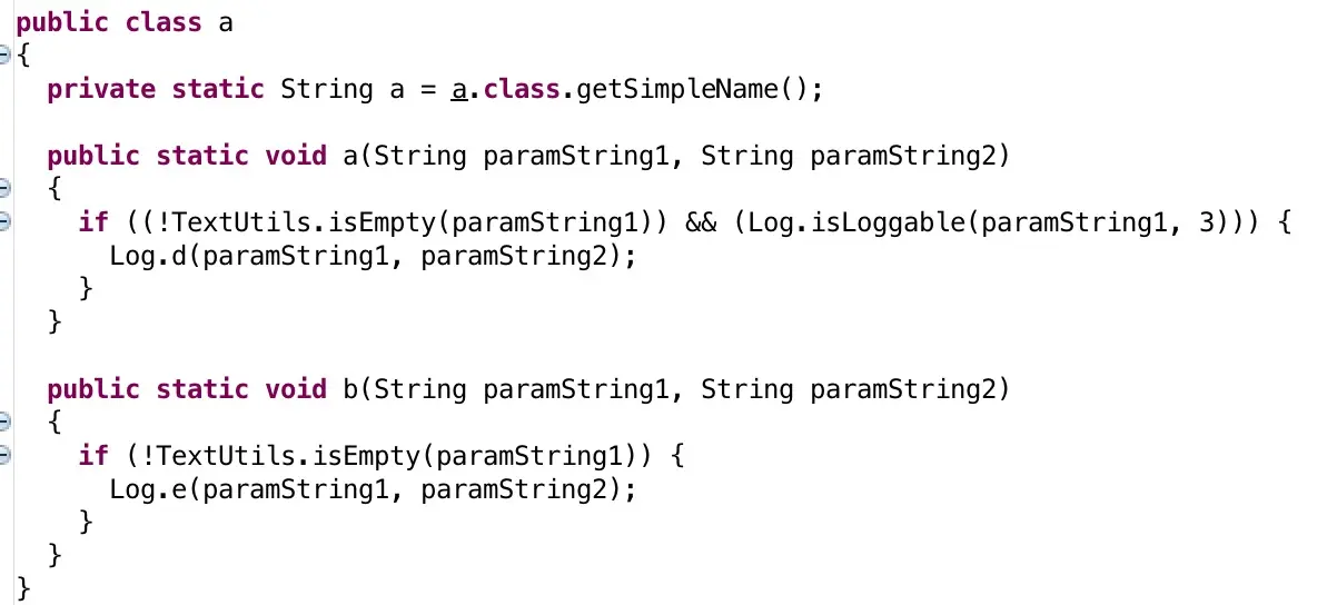 这里简单的写了一个日志工具类,很可能和大家使用的不一样,但大多数日志都有一个开关逻辑。用这个开关去控制所有日志是否打印。 4.2、使用DexToJar 获取jar包(参照工具中获取jar的方法),然后分析