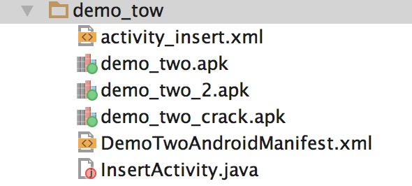 运行得到demo_two.apk,将assets的demo_two文件已经写好Activity和布局文件,添加到相应位置运行得到demo_two_2.apk 也可以直接使用文件夹中两个apk