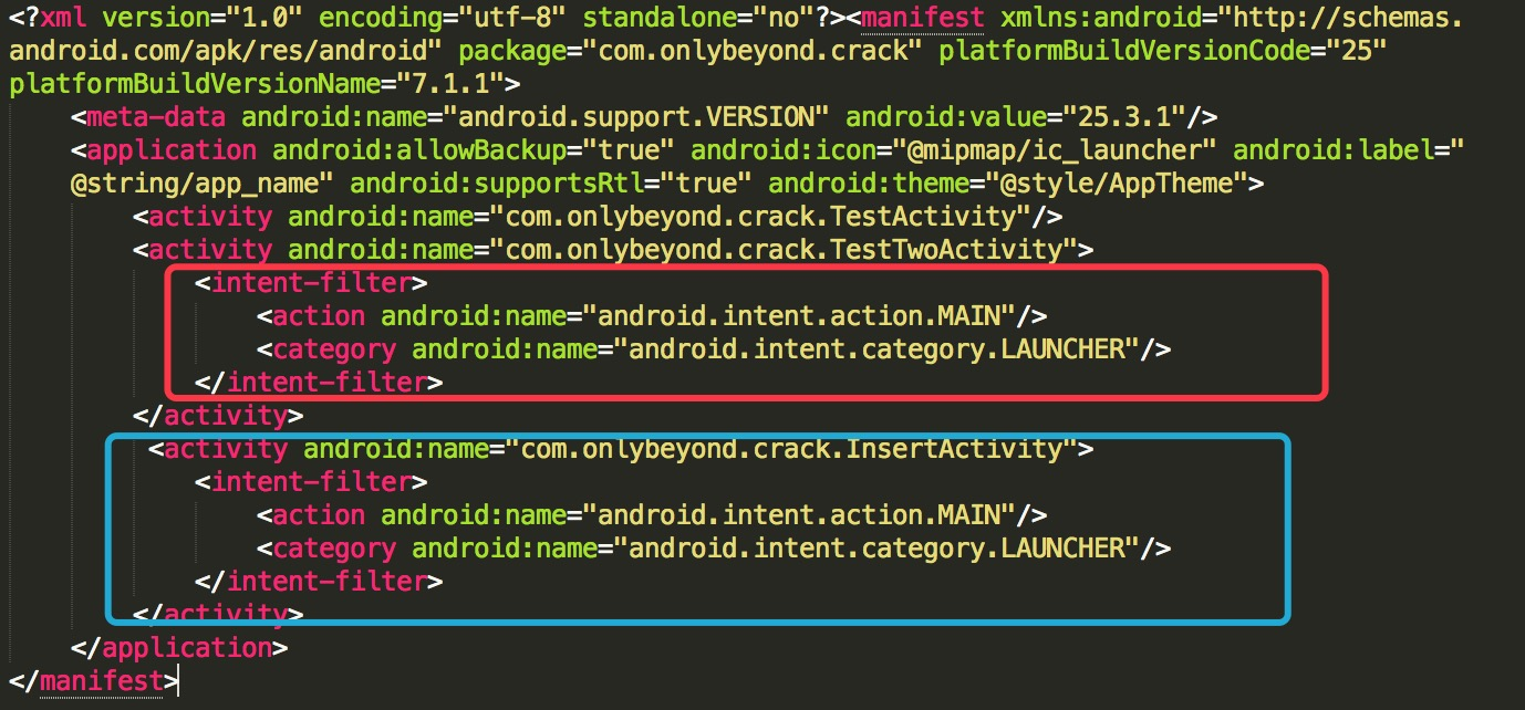1.1.3.1、获取apk资源文件、AndroidManifest.xml文件、smali文件 apktool d xxx/xxx/crack.apk(生成文件在命令当前位置)