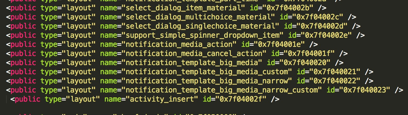 不在本篇讨论范围。layout id 最大的是0x7f04002e,在它的基础上加1即可(注意采用的是16进制)