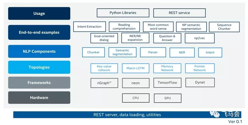 这个库中我最喜欢的组件之一是一个可视化组件,它以整洁的方式显示模型的注释。上图是NLP的框架(项目地址:https://github.com/NervanaSystems/nlp-architect)