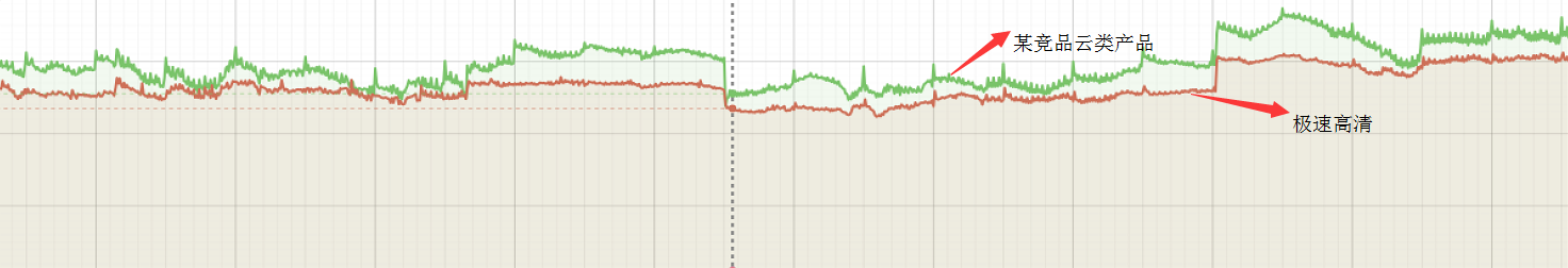 如果上图所示,极速高清在VMAF质量稍微有优势情况,码率比友商少8%-10%左右。