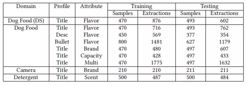 我们对 3 类产品进行试验:(1)狗粮,(2)和(3)照相机。表 3 给出了不同数据集的描述和实验设置。
