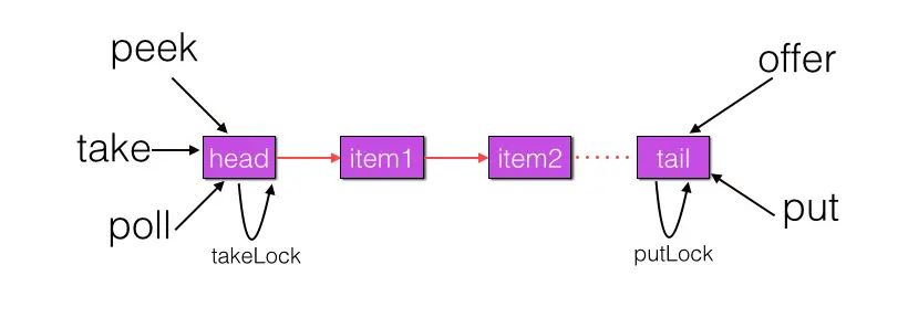 最后用一张图来加深LinkedBlockingQueue的理解,如下图: