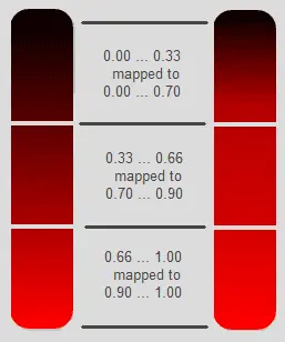 feComponentTransfer重的type类型有四种,table其中一种。如下图,将 tableValues="0.0 0.7 0.9 1.0 " 时,横轴会分为三等份:0.0 0.33 0.66 1,分别对应的纵轴为 0.0 0.7 0.9 1.0。