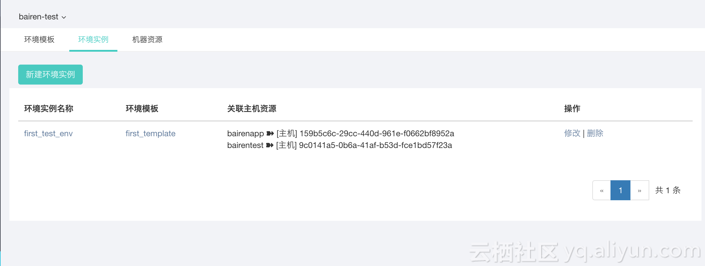 创建环境实例。环境实例将绑定运行资源(机器),可以供应用实际运行。一个环境模板可以对应多个环境实例。