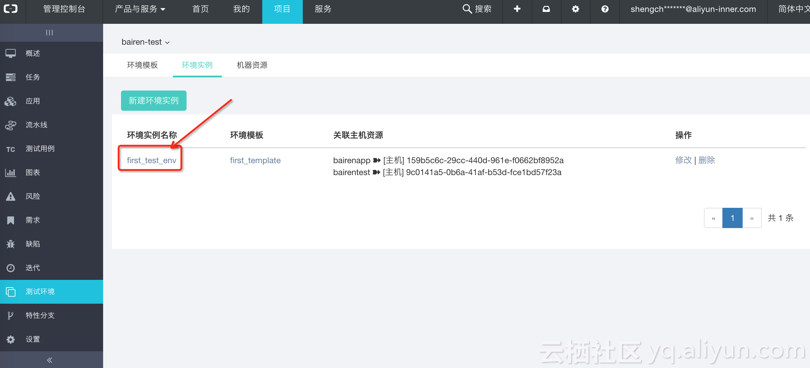 确定后,就会展示当前特性分支使用的所有环境实例。