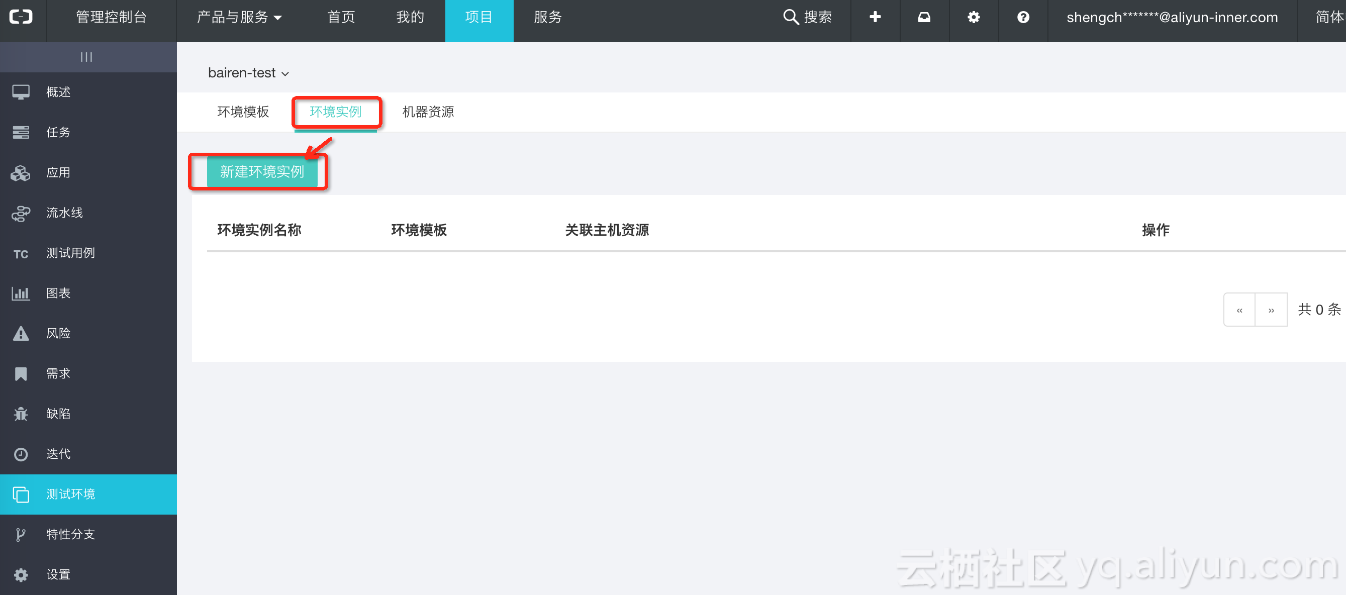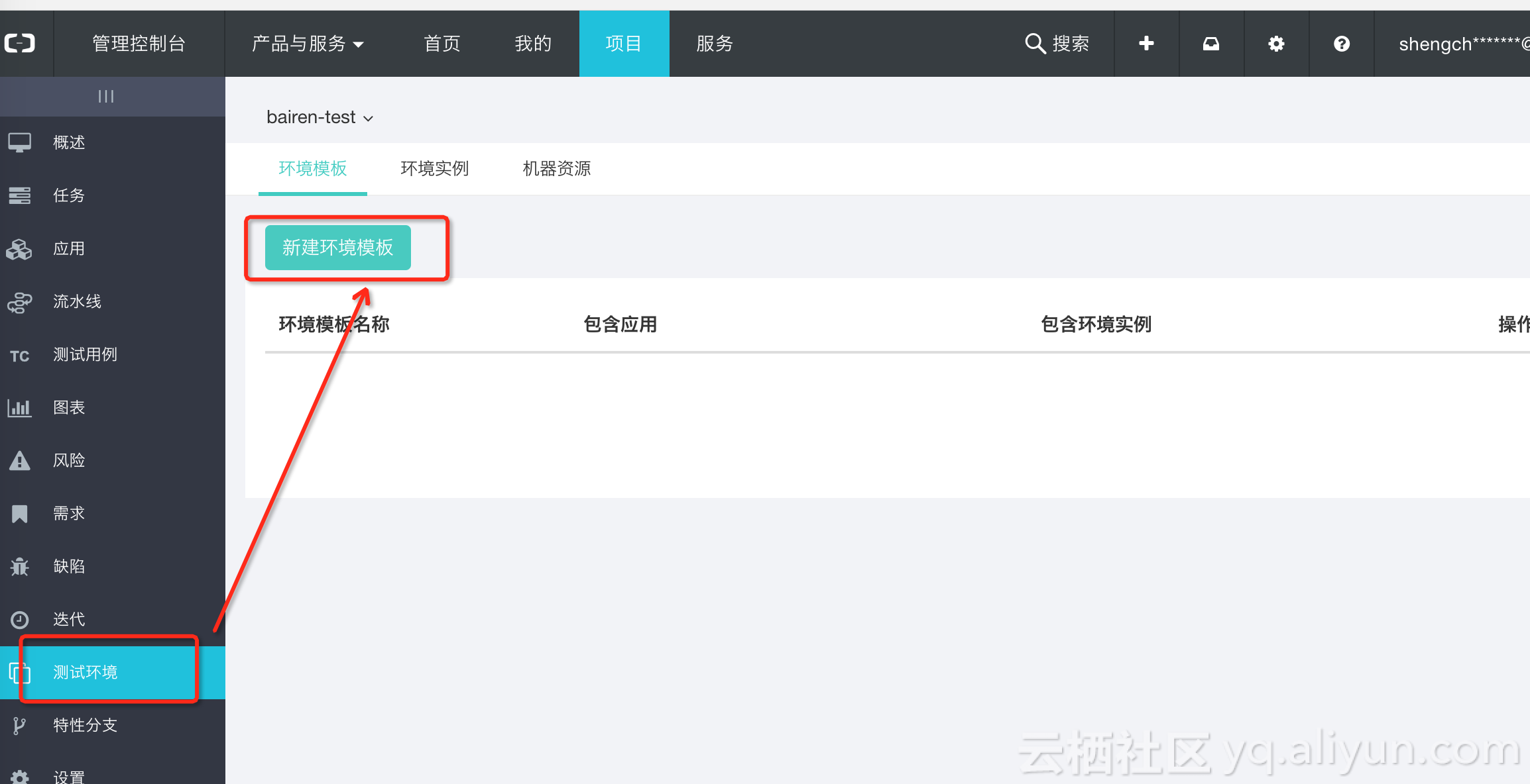 登录云效,选择项目——具体项目——设置——服务,刷新后就在左侧就会出现“测试环境”菜单。