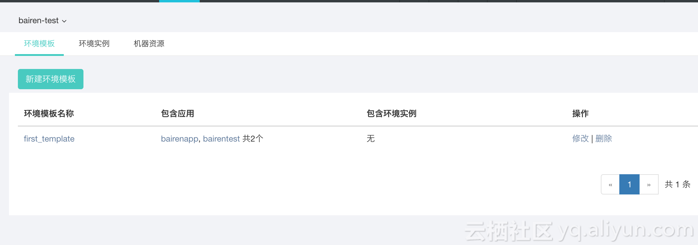 展示环境模板列表。