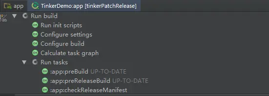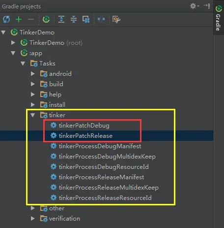 步骤二:修改项目中的代码,然后就可以调用tinkerPatch命令生成patch补丁文件,tinkerPatch有Debug和Release两种模式,任选一种运行测试即可。