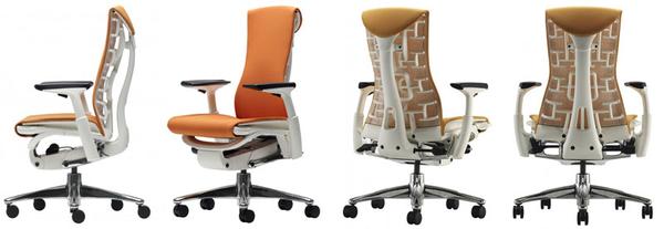 Aeron 和 Embody 都是可以调节扶手、腰托等部件的,根据自己情况调节后,坐上去能感觉到自己的背部和腰部被整个包裹起来托住,久坐几个小时也感觉不到任何疲劳感。很多使用 Aeron 和 Embody 的程序员表示坐过 Herman Miller 的椅子后,再也没法回头去坐其他的椅子了。