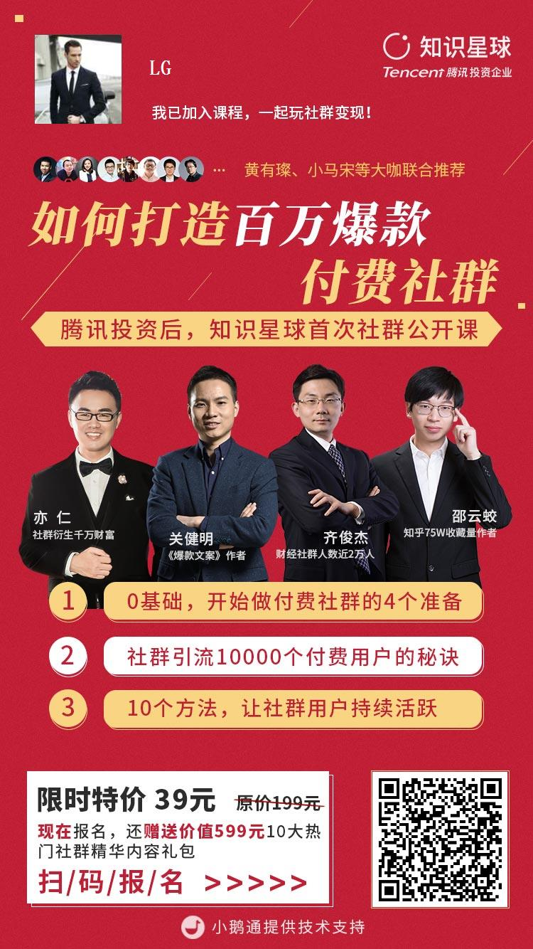 知识星球首次社群公开课,也给自己一次成长的机会 SailorCai老蔡爱钓鱼 2018-06-25 481 阅读1分钟 本来也是深夜了,睡前浏览了一下微信。在某公众得知识星球在搞一个公开课。 之前只知道很多人通过知识星球赚了很多钱,甚至超过自己的工资,也是很好奇很激动。作为一个程序猿,也想窥探一下捡钱的秘诀。 于是立即加入了课程。如果你也有强烈的求知欲,那就一起来吧!通过下面图片中的二维码即可获取课程页面