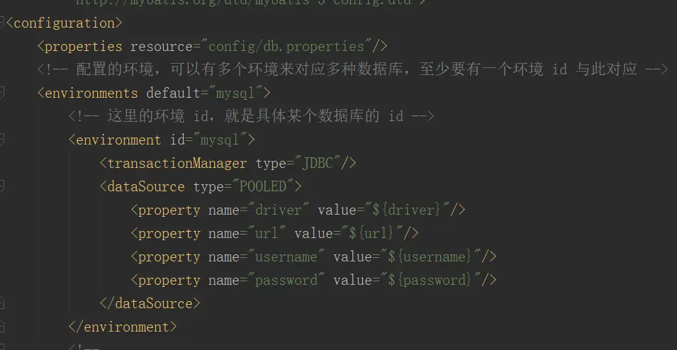 Mybatis 可以对应多种环境,这在配置文件中定义: