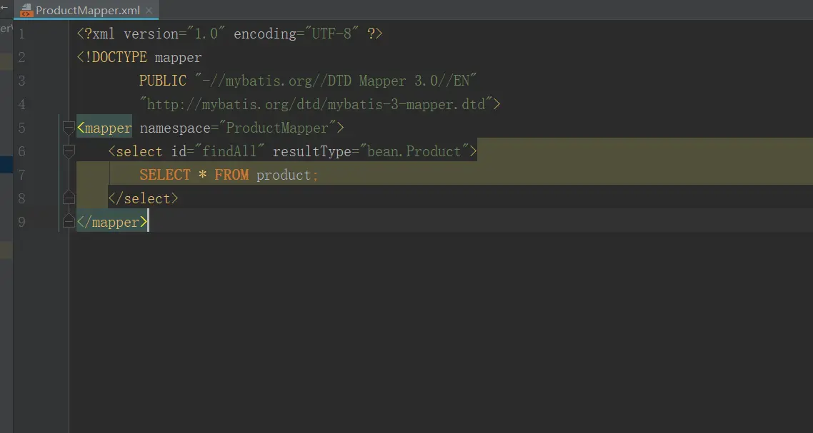 <select id="findAllProducts" resultType="bean.Product">