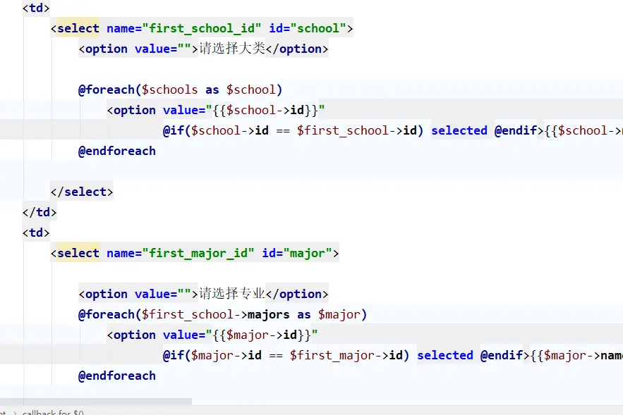 //查出学校下的专业